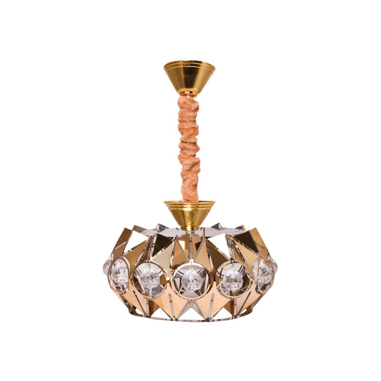 این لامپ با طراحی مدرن و استفاده از جنس استیل با روکشهای طلایی و نقرهای، جلوهای شیک و لوکس به هر فضای داخلی میبخشد. کریستالهای درخشان که در کنار پوشش فلزی به کار رفتهاند، زیبایی خاصی ایجاد میکنند و نورپردازی محیط را به زیبایی کامل میکنند. طراحی خاص آن، این لامپ را به گزینهای ایدهآل برای دکوراسیونهای مدرن تبدیل کرده است. مناسب برای استفاده در سالنهای پذیرایی، اتاقهای بزرگ و فضاهایی که به روشنایی خاص نیاز دارند.