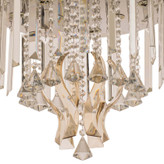 - جلوه بصری بینظیر: کریستالهای متعدد در اشکال مختلف (منشوری، مهرهای و آویزهای خاص) با شکست و بازتاب نور، الگوهای نوری زیبایی بر روی سقف و دیوارها ایجاد میکنند.
