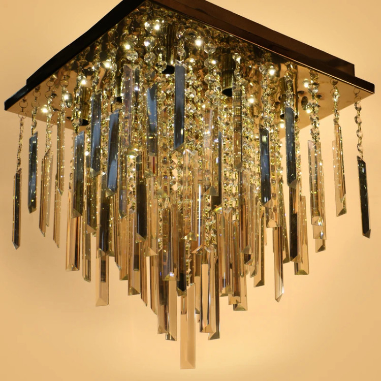 لوستر سقفی کریستالی سایز 30x30 با 6 سرپیچ شمعی و نورپردازی LED (30x30 Crystal Ceiling Chandelier with 6 Candle Sockets and LED Lighting)