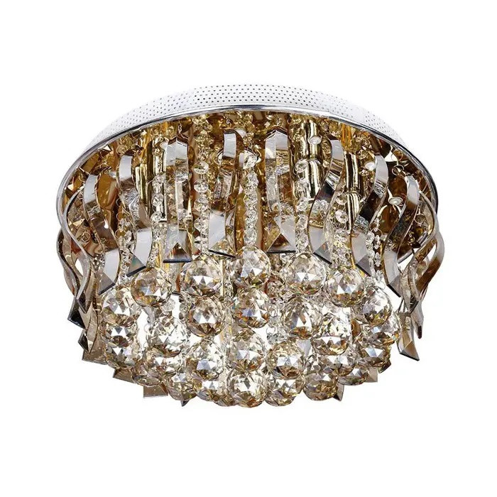 این لوستر کریستالی با قطر 30سانتیمتر، برای فضاهایی مانند پذیرایی، اتاق خواب، راهرو و حتی آشپزخانه مناسب است. طراحی گرد و فشرده آن باعث میشود که نور به صورت متمرکز و درخشان در فضا پخش شود.