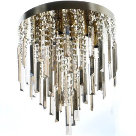 ترکیب نور لامپها با شکست زیبای کریستالهای شفاف و طلایی، جلوهای گرم، دلنشین و بسیار شیک ایجاد میکند که برای فضاهای خاص مانند اتاق نشیمن، پذیرایی، لابی، اتاق مستر و سالنهای کوچک فوقالعاده مناسب است